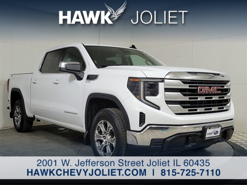 2023 GMC Sierra 1500 SLESummit White EcoTec3 5.3L V8 4WDClean CARFAX.Come see this 2023 GMC Sierra 1500 SLE! It's the one you've been hoping for! This Sierra 1500 comes equipped with these options:10-Speed Automatic, 4WD, Jet Black w/Cloth Seat Trim, 120-Volt Instrument Panel Power Outlet, 2 Charge/Data USB Ports, All-Weather Floor Liner (LPO), Apple CarPlay/Android Auto, Auto High-beam Headlights, Chrome Header w/Medium Silver Grille Insert Bars, Color-Keyed Carpeting Floor Covering, Compass, Deep-Tinted Glass, Dual-Zone Automatic Climate Control, Electric Rear-Window Defogger, Electrical Steering Column Lock, Front Frame-Mounted Black Recovery Hooks, Fully automatic headlights, GMC Connected Access Capable, HD Rear Vision Camera, Heated Driver Front Outboard Passenger Seating, Heated steering wheel, Hitch Guidance, IntelliBeam Automatic High Beam On/Off, Keyless Open Start, Manual Tilt-Wheel Telescoping Steering Column, Navigation System, OnStar GMC Connected Services Capable, Power Door Locks, Power Front Windows w/Driver Express Up/Down, Power Front Windows w/Passenger Express Down, Power Rear Windows w/Express Down, Preferred Equipment Group 3SA, Push Button Start, Remote Start Package, Remote Vehicle Starter System, SiriusXM w/360L, SLE Convenience Package, SLE Value Package, Spray-On Pickup Bed Liner w/GMC Logo, Standard Suspension Package, Steering Wheel Audio Controls, Theft Deterrent System (Unauthorized Entry), Trailering Package, Wi-Fi Hotspot Capable, Wireless Phone Projection, X31 Off-Road Protection Package, X31 Off-Road Package.Recent Arrival!Looking for an affordable, reliable, new or used vehicle? If you've been looking at dealerships in Orland Park, Bolingbrook, or Naperville and not finding what you want, give us a try. We have a great selection of new, used, and Certified pre-owned cars and trucks on our lot, and we're sure there's one that will suit your needs. Whether it's a commuter car, family vehicle, or truck you're looking for, you'll find it here. And all of our used vehicles are inspected for quality and safety, so you can drive away with confidence. *Plus tax, title, license doc fee. With approved credit as determined by GM Financial. Dealer sponsored buy down rate may affect final selling price. $20,000 Max balance financed. See dealer for details. Ends 1/31/2026.