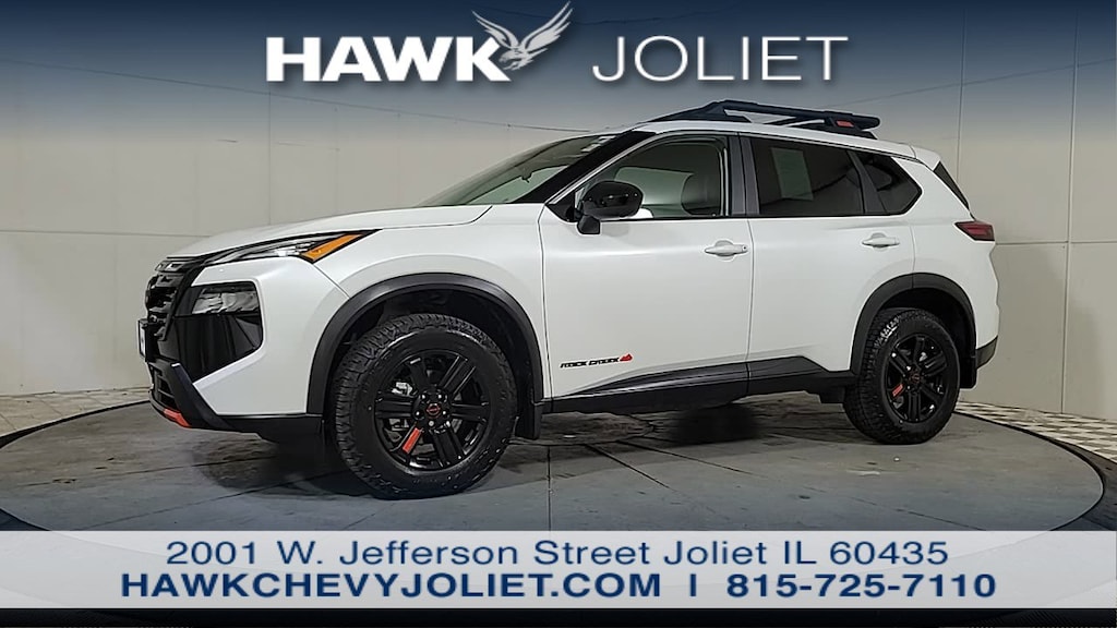 2025 Nissan Rogue Rock CreekEverest White Pearl 1.5L DOHC AWDCARFAX One-Owner.Come see this 2025 Nissan Rogue Rock Creek! It's the one you've been hoping for! This Rogue comes equipped with these options:AWD, Android Auto and Apple CarPlay, Auto High-beam Headlights, Automatic temperature control, Black Splash Guards (set of 4), Front dual zone A/C, Fully automatic headlights, Heated door mirrors, Heated front seats, Leatherette and Ballistic Nylon Seating with Contrast Stich and Rock Creek Logo, Power driver seat, Power Liftgate.Recent Arrival! 27/32 City/Highway MPGLooking for an affordable, reliable, new or used vehicle? If you've been looking at dealerships in Orland Park, Bolingbrook, or Naperville and not finding what you want, give us a try. We have a great selection of new, used, and Certified pre-owned cars and trucks on our lot, and we're sure there's one that will suit your needs. Whether it's a commuter car, family vehicle, or truck you're looking for, you'll find it here. And all of our used vehicles are inspected for quality and safety, so you can drive away with confidence. *Plus tax, title, license doc fee. With approved credit as determined by GM Financial. Dealer sponsored buy down rate may affect final selling price. $20,000 Max balance financed. See dealer for details. Ends 1/31/2026.