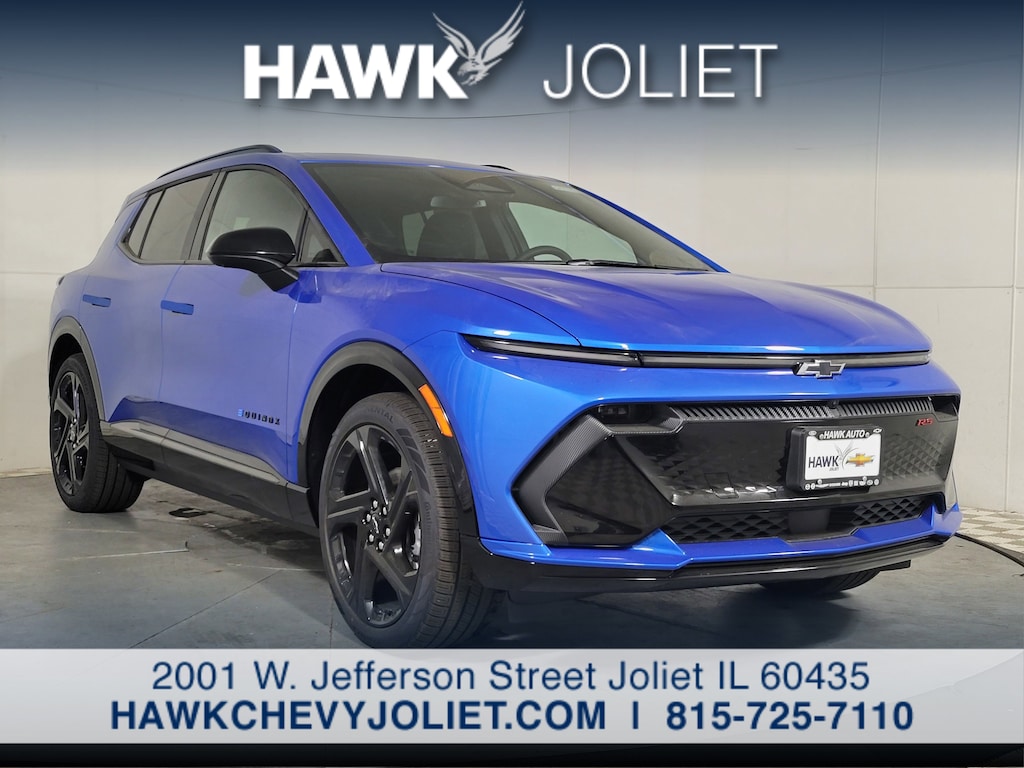 This Chevrolet Equinox EV boasts a Electric engine powering this Automatic transmission. WHEELS, 21 (53.3 CM) BLACK PAINTED ALUMINUM (STD), TRANSMISSION, NONE (ELECTRIC DRIVE UNIT) (STD), SUNROOF, POWER, DUAL PANEL, PANORAMIC, SLIDING with power sunshade.* This Chevrolet Equinox EV Features the Following Options *SEATS, FRONT BUCKET (STD), RS PREFERRED EQUIPMENT GROUP includes standard equipment, RIPTIDE BLUE METALLIC, PROPULSION, ELECTRIC, AWD, FRONT, PROPULSION, DUAL MOTOR ALL-WHEEL DRIVE (AWD), MOBILE SERVICE PLUS. MobileService+ is a suite of service conveniences for 3 years - Mobile Service, Pick-up & Delivery, and Loaner with Drop off. MobileService+ van will come to your home to perform select services or pick up your vehicle and return it once the service is completed at the dealership. Cost of part and labor are not included, ENGINE, NONE (STD), ELECTRIC DRIVE UNIT, SECONDARY, 1 MOTOR, 78R, ADRENALINE RED, EVOTEX SEAT TRIM, Wireless Phone Charging.* Visit Us Today *A short visit to Hawk Joliet located at 2001 W Jefferson St, Joliet, IL 60435 can get you a trustworthy Equinox EV today!